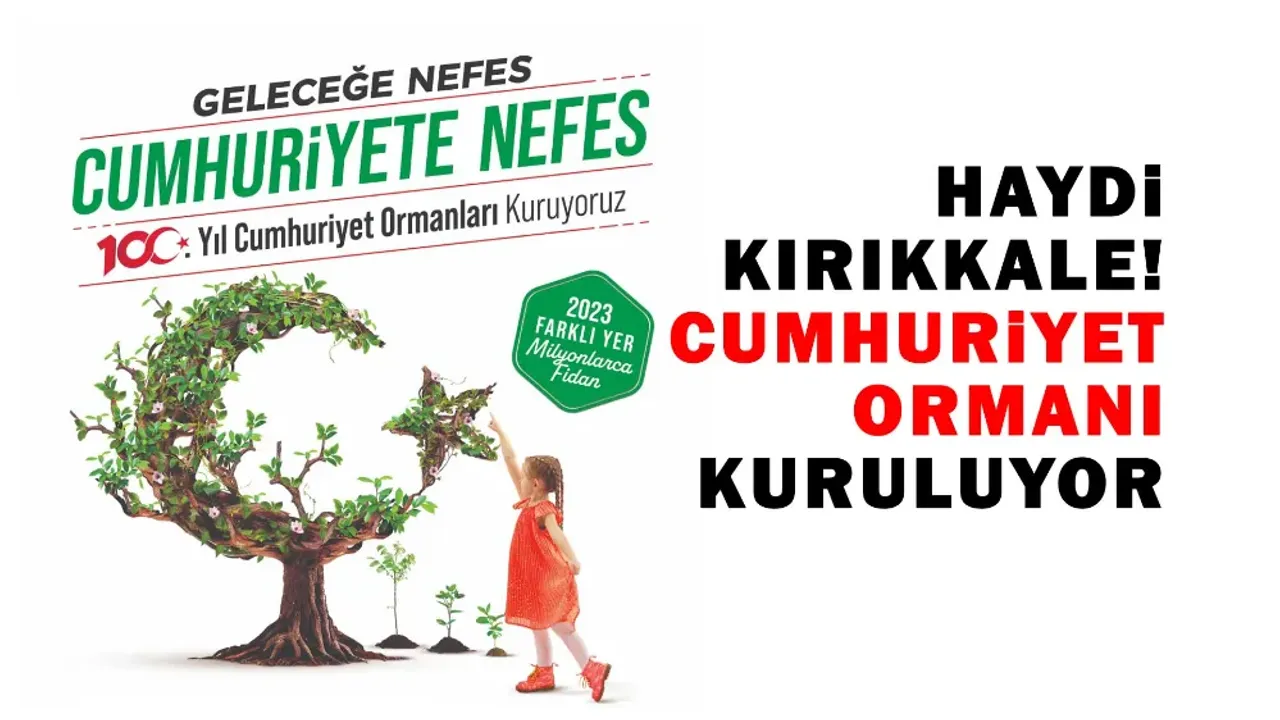 Türkiye’de 81 ilde 2023 farkı yerde fidan dikimi gerçekleştirilerek, Cumhuriyet Ormanları kurulması hedeflenen etkinlikte, Kırıkkale merkezinde ve ilçelerde okulların bahçelerine de fidan dikimi yapılacak. 100 yıl Cumhuriyet Ormanları ve milli Ağaçlandırma Günü nedeniyle yapılacak fidan dikimi etkinliğine, tük Kırıkkaleliler davet edilirken, Kırıkkale’de 2023 yılı içerisinde toplamda 800 bin fidan toprakla buluşturulması hedefleniyor. Ayrıca, ülke genelinde son dört yıl içerisinde 467 bin 500 dekar alanda 37 milyon fidan dikimi gerçekleştirildi.