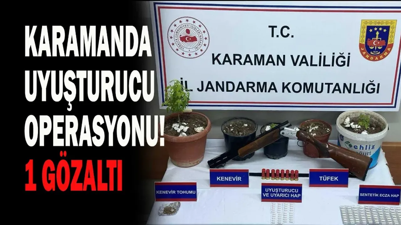 Edinilen bilgiye göre, İl Jandarma Komutanlığına bağlı ekipler, Ayrancı ilçesine bağlı Ağılönü köyünde H.A. isimli şahsın evinde kenevir yetiştirdiği yönünde bilgiye ulaştı. Cumhuriyet Başsavcılığının koordinesinde şahsın evinde 'Elmas' isimli narkotik köpeğiyle arama yapan ekipler, 1 adet ruhsatsız av tüfeği, 8 adet av tüfeği fişeği, 108 adet hap, 5 ayrı saksıya ekilmiş kenevir bitkisi ve 10 gram kenevir tohumu ele geçirdi. Gözaltına alınan H.A., hakkında adli işlem başlatılmak üzere Jandarma Komutanlığına götürüldü.