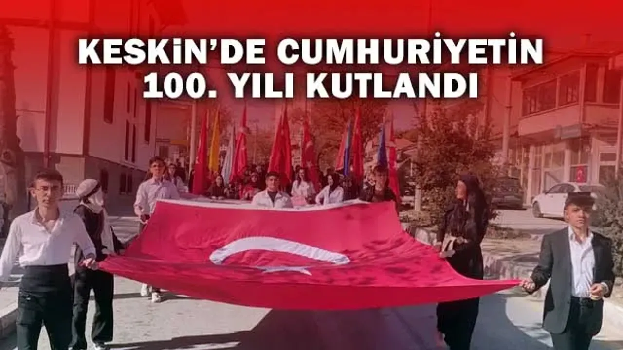 Keskin'de Cumhuriyetin kuruluşunun 100. yıldönümü etkinlikleri Atatürk Anıtı'na Kaymakamlık ve Belediye Başkanlığının çelenk sunumu ile başladı. Kaymakamlık Makamında tebriklerin kabulü ile devam eden etkinliklerde Keskin Cumhuriyet Meydanında tören düzenlendi. Saygı duruşu ve İstiklal Marşı’nın okunması ile başlayan törene Keskin Kaymakamı Tunahan Çil, Belediye Başkanı Dede Yıldırım, ilçe protokolü ve vatandaşlar katıldı.