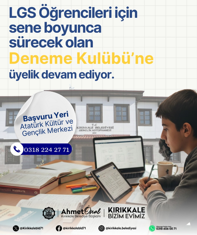 Öğrencilerin Liselere Geçiş Sistemi (LGS) sınavına daha donanımlı şekilde hazırlanabilmesi amacıyla hayata geçirilen uygulama kapsamında, deneme sınavları ücretsiz olarak gerçekleştiriliyor. Belediye yetkilileri, her öğrencinin eşit imkânlarla sınavlara hazırlanabilmesini hedeflediklerini belirterek, eğitim alanındaki destekleyici projelerin kararlılıkla devam edeceğini vurguladı. Ücretsiz deneme sınav kulübüne başvurular, Atatürk Kültür ve Gençlik Merkezi üzerinden yapılabiliyor.