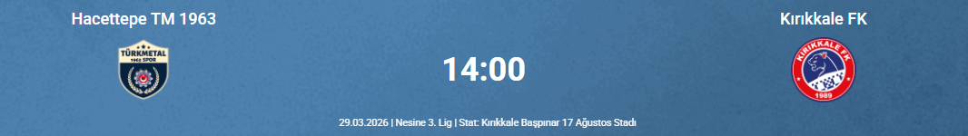 26 hafta sonunda 31 puanla 11’inci sırada yer alan Kırıkkale FK, alt sıralardaki puan farklarının oldukça yakın olması nedeniyle sahaya mutlak galibiyet parolasıyla çıkacak. Kırmızı lacivertli ekip, taraftarı önünde alacağı üç puanla rahat nefes almak istiyor. Maç öncesinde konuk ekip Hacettepe cephesinden karşılaşmanın seyircisiz oynanması yönünde talep gelmişti. Ancak kulüp yönetiminin yaptığı yoğun girişimler sonucunda taraflar arasında uzlaşı sağlandı.
