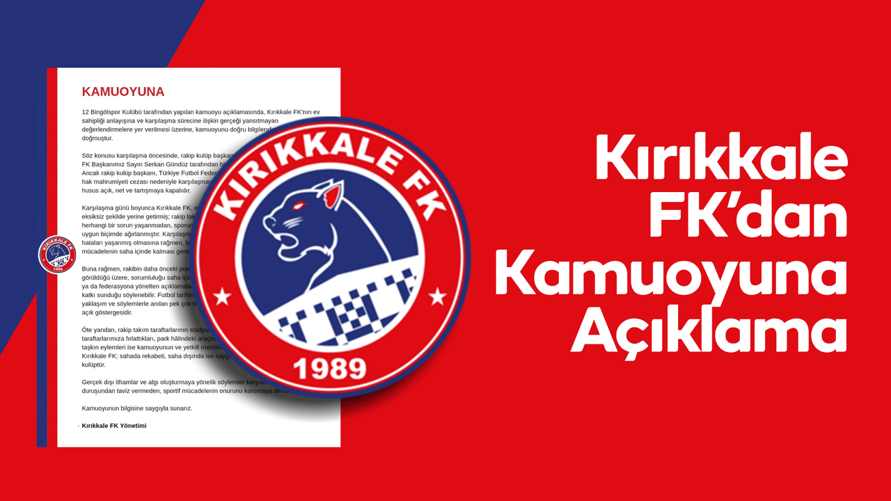 Kırıkkale Futbol Kulübü’nün sahada rekabeti, saha dışında ise saygı ve sağduyuyu esas alan bir kulüp olduğu vurgulanarak, gerçek dışı ithamlar ve algı oluşturmaya yönelik söylemler karşısında kurumsal duruştan taviz verilmeyeceği ve sportif mücadelenin onurunun korunmaya devam edileceği belirtildi.