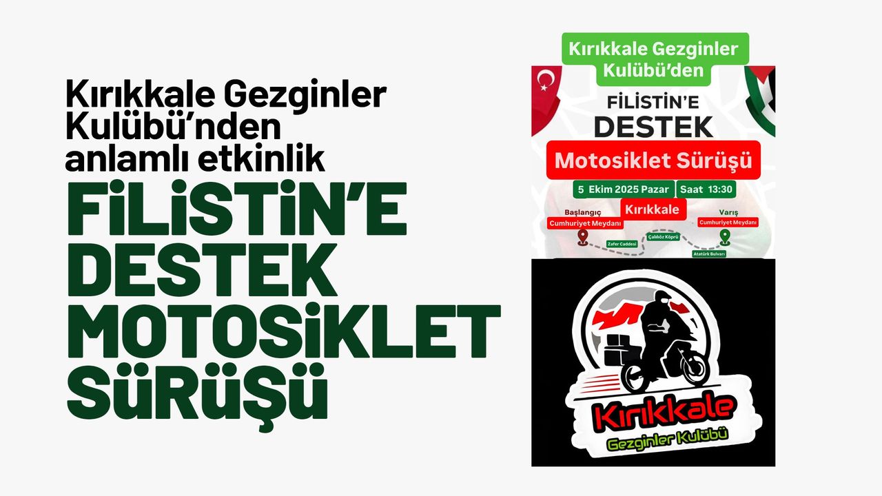 Cumhuriyet Meydanı’ndan başlayacak sürüş, Zafer Caddesi, Çalılıöz Köprüsü ve Atatürk Bulvarı güzergâhını takip ederek yeniden Cumhuriyet Meydanı’nda sona erecek. Kırıkkale Gezginler Kulübü yetkilileri, gerçekleştirecekleri bu sürüşün Filistin halkının yanında olduklarını göstermek adına büyük önem taşıdığını vurguladı. Yetkililer, motosiklet tutkunları başta olmak üzere tüm Kırıkkalelileri etkinliğe katılmaya davet etti.