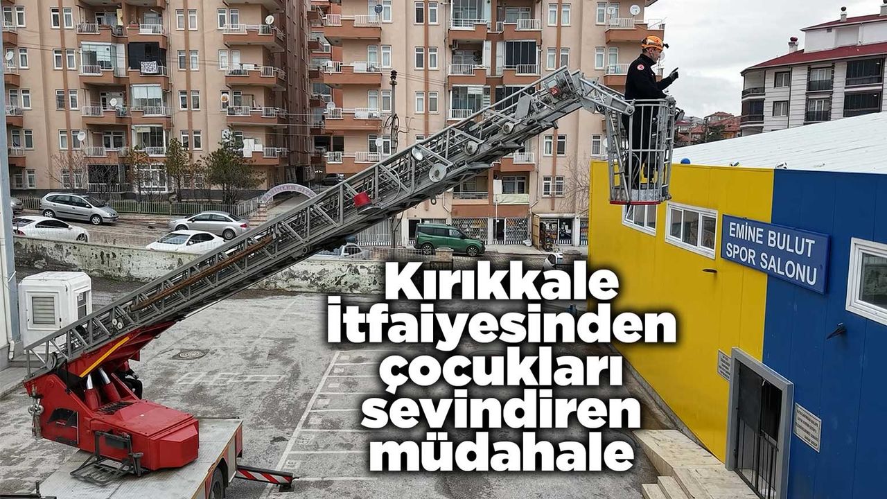 Türkmetal Mustafa Özbek İlkokulu öğrencileri, spor salonunun çatısına kaçan toplarını almak için okul idaresinden yardım istedi. Okul yönetimi de durumu Kırıkkale Belediyesi İtfaiye Müdürlüğü'ne bildirdi. Kısa sürede okula gelen itfaiye personeli, merdivenli araçla çatıya çıkarak topları indirip öğrencilerin yüzünü gildürdü. İtfaiye çavuşu Aydın Berçin, çocukların toplarının çatıda kaldığını ve üzüldüklerini öğrendiklerini belirterek kısa sürede okula geldiklerini söyledi.