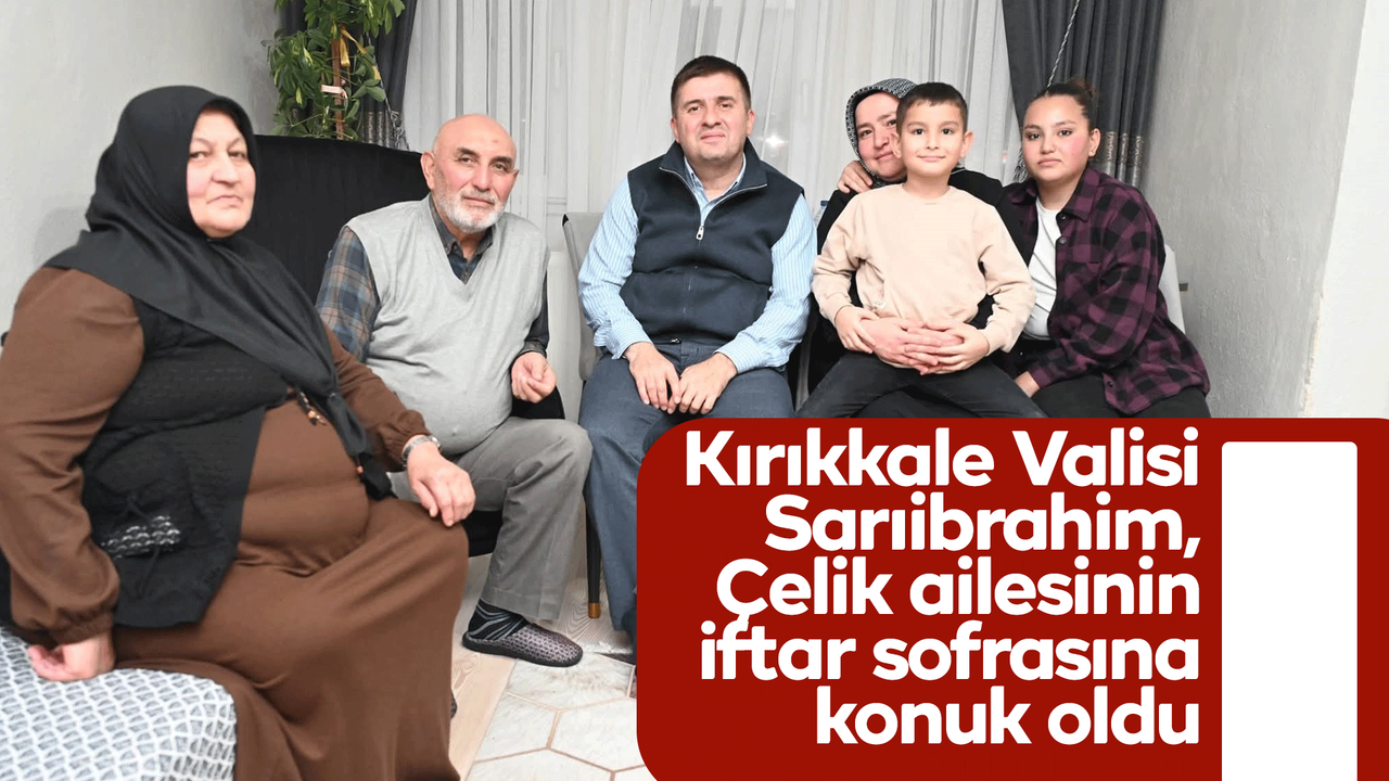 Kırıkkale Valisi Hüseyin Engin Sarıibrahim, Ramazan ayı dolayısıyla Mehmet ve Hatice Çelik çiftinin evini ziyaret ederek, iftar sofrasına konuk oldu. Sarıibrahim, aile fertleriyle bir süre sohbet etti. Ramazan ayının birlik, beraberlik ve dayanışma ruhuna dikkat çeken Vali Sarıibrahim, devletin her zaman vatandaşın yanında olduğunu vurguladı.