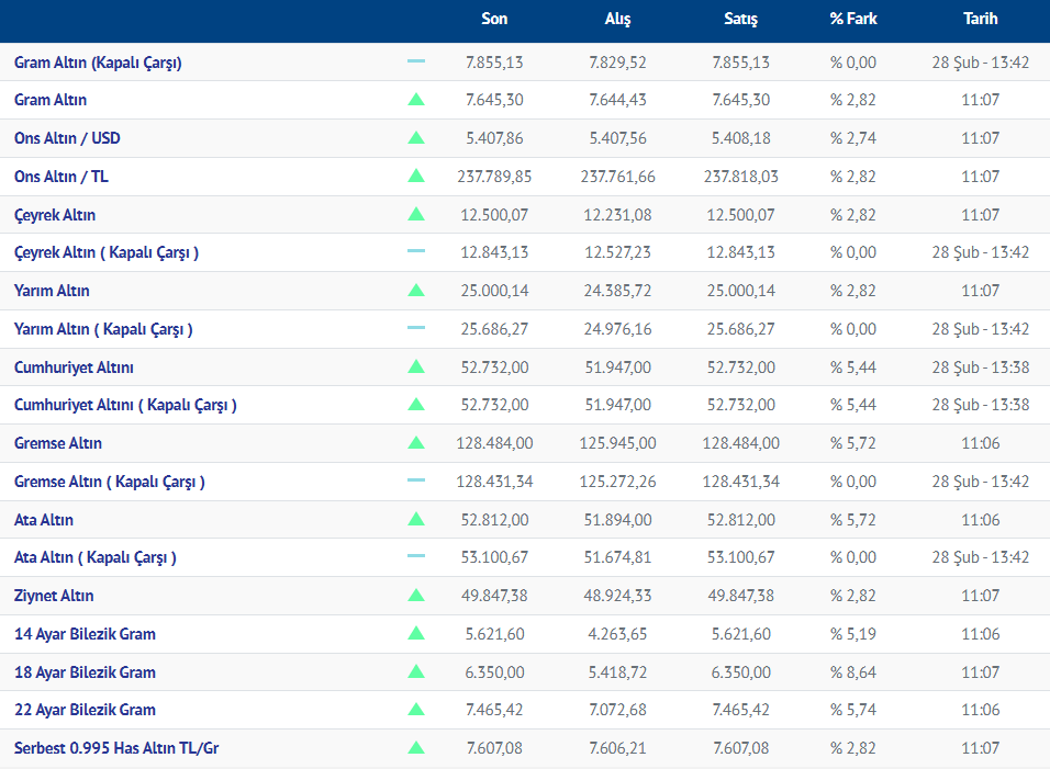 Gram altın yeni güne yükselişle başladı. Güne yükselişle başlayan gram altının bugünkü (02.03.2026) fiyatı, Kırıkkale Kuyumcular Derneğinin verilerine göre, gram altın 7645 liradan işlem görüyor.