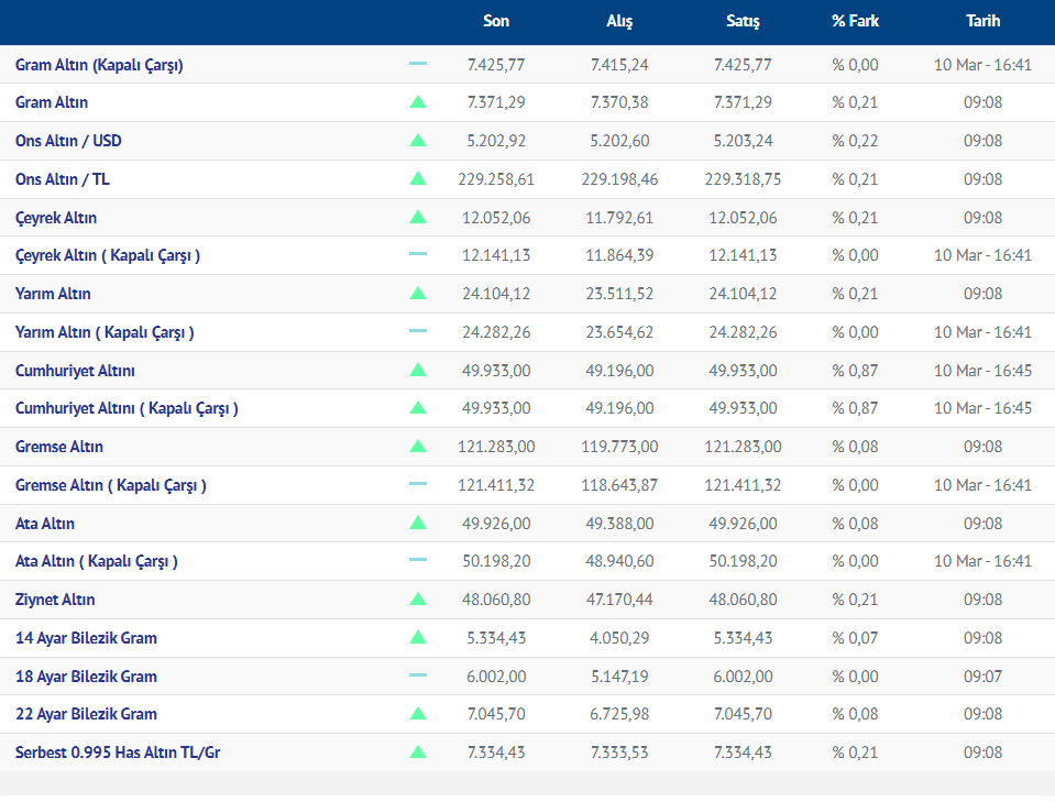 Gram altın yeni güne yükselişle başladı. Güne yükselişle başlayan gram altının bugünkü (11.03.2026) fiyatı, Kırıkkale Kuyumcular Derneğinin verilerine göre, gram altın 7371 liradan işlem görüyor.