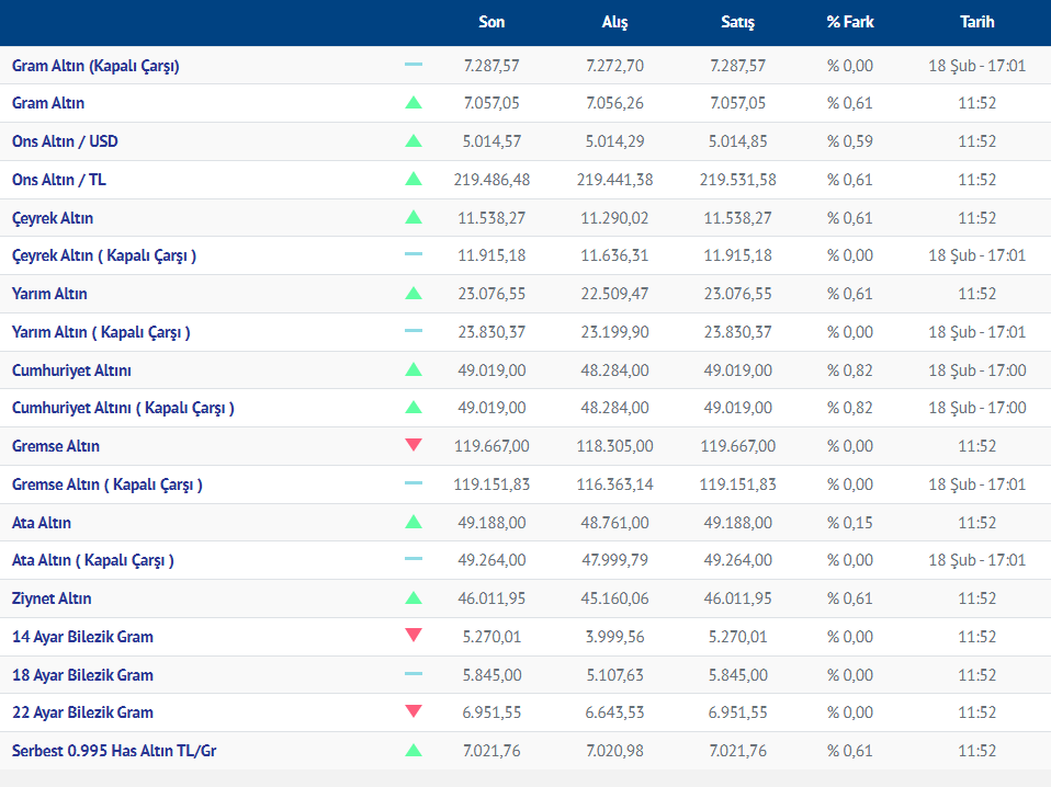 Gram altın yeni güne düşüşle başladı. Güne düşüşle başlayan gram altının bugünkü (19.02.2026) fiyatı, Kırıkkale Kuyumcular Derneğinin verilerine göre, gram altın 7057 liradan işlem görüyor.