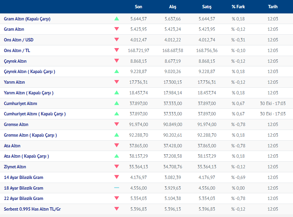 Gram altın yeni güne yükselişle başladı. Güne yükselişle başlayan gram altının bugünkü (31.10.2025) fiyatı, Kırıkkale Kuyumcular Derneğinin verilerine göre, gram altın 5423 liradan işlem görüyor.