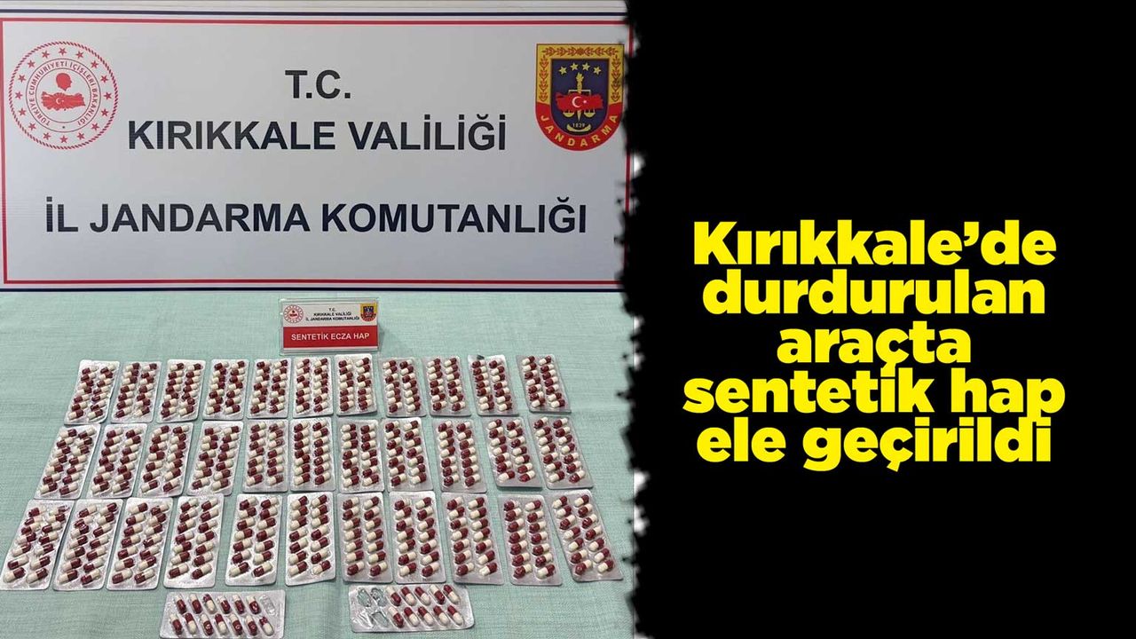 Kırıkkale İl Jandarma Komutanlığı ekipleri, devriye sırasında durumundan şüphelendikleri bir aracı durdurdu. Durdurulan araçta yapılan aramada 485 sentetik hap ele geçilirken, araçta bulunan M.D.(24), A.H.A.(23) ve M.B.(23) gözaltına alındı. Şüphelilerin jandarmadaki işlemleri devam ediyor.