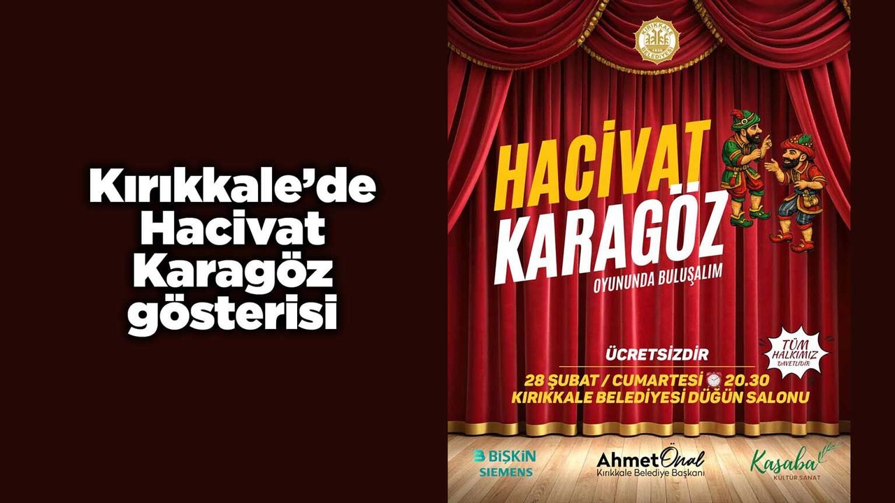 Kırıkkale Belediyesi ve Bişkin Ticaret’in destekleriyle, Kasaba Kültür Sanat tarafından Hacivat-Karagöz gösterisi düzenleniyor. Etkinlik, Cumartesi günü Millet Bahçesi içerisinde bulunan Kırıkkale Belediyesi Düğün Salonu’nda gerçekleştirilecek. Saat 20.30’da başlayacak olan geleneksel gölge oyunu gösterisi vatandaşlara ücretsiz olarak sunulacak.