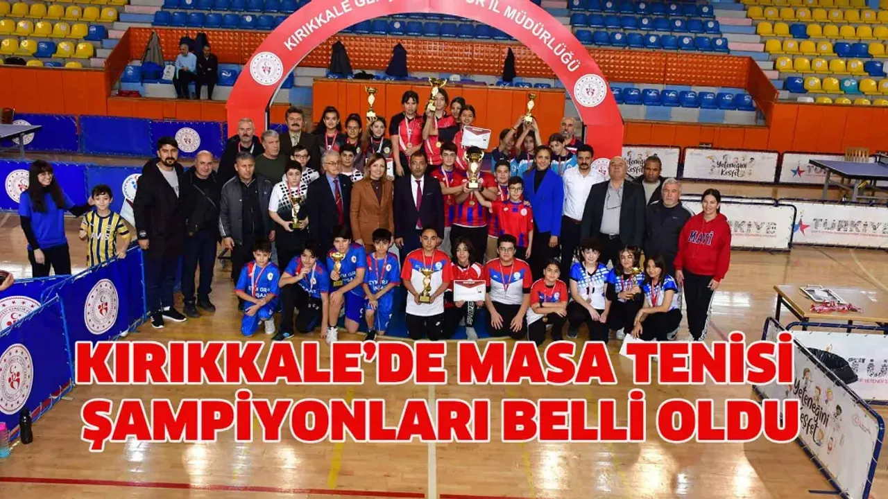 Kırıkkale’de 2023-2024 yılı okul sporları Masa Tenisi müsabakaları 17 Ağustos Başpınar Kapalı Spor salonunda gerçekleştirildi. 9 erkek ve 6 kadın takımının katıldığı müsabakalar byük çekişmelere sahne oldu. Erkeklerde Şehit Aydın Çopur İmam Hatip Ortaokulu şampiyon olurken, kadınlarda ise Ahmet Sümer Ortaokulu şampiyon oldu. Şampiyon takımlara ödülleri düzenlenen ödül töreni ile verildi. Gençlik ve Spor İl Müdürlüğünden yapılan açıklamada, “9 erkek 6 Bayan Takımın Katıldığı Okul Sporları Yıldızlar Masa Tenisi müsabakaları ödül töreni 17 Ağustos Spor salonunda yapıldı” denildi.