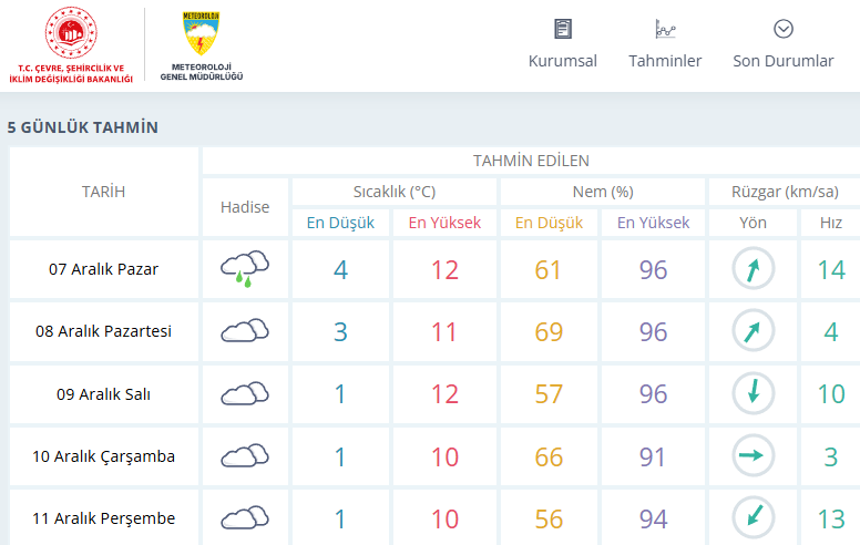 Haftanın geri kalanında ise yağış beklenmiyor ancak bulutlu hava hakim olacak. 8–11 Aralık tarihleri arasında sıcaklıkların geceleri 1–3 dereceye kadar düşeceği, gündüzleri ise 10–12 derece seviyelerinde kalacağı tahmin ediliyor. Rüzgârın hafta boyunca zaman zaman 10–14 km/s hızlara ulaşacağı belirtilirken, nem oranı yüksek seyretmeye devam edecek. Meteoroloji, vatandaşların özellikle sabah ve gece saatlerinde hissedilen soğuklara karşı dikkatli olmasını öneriyor.