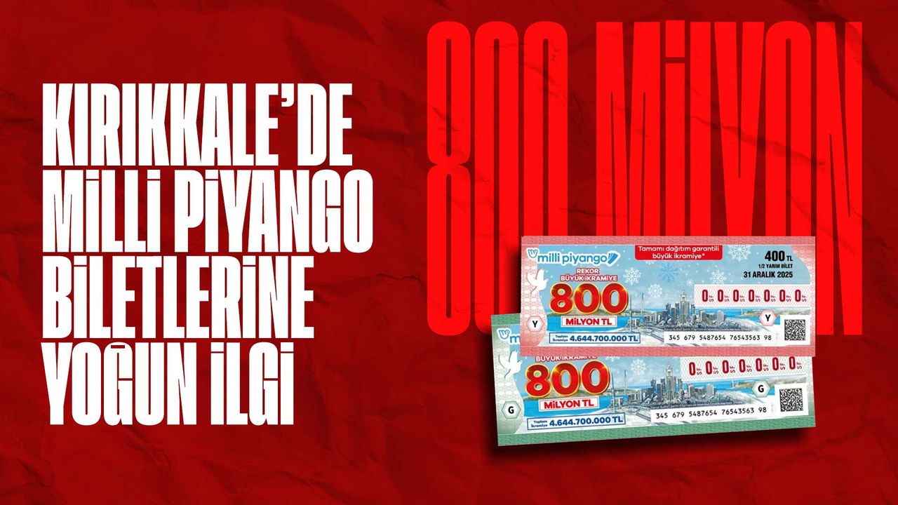 2025 yılının bitmesine sayılı günler kala, yılbaşının vazgeçilmez geleneği olan Milli Piyango, 800 milyon liralık büyük ikramiyesiyle vatandaşların hayallerini süslüyor. Tüm Türkiye’de olduğu gibi Kırıkkale’de de vatandaşlar, Milli Piyango biletlerine yoğun ilgi gösteriyor. 2026 yılbaşı Milli Piyango çekiliş biletlerinin fiyatı ise şöyle; çeyrek bilet 200 TL, yarım bilet 400 TL ve tam bilet 800 TL.
