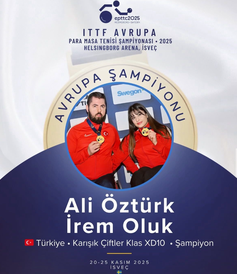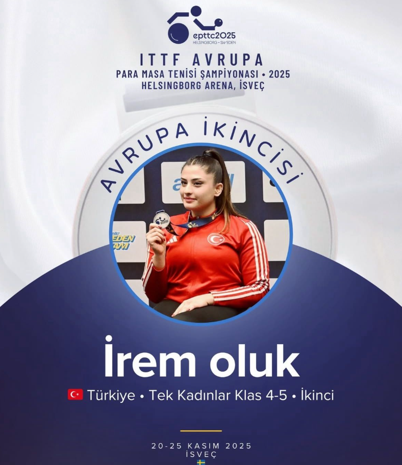 Kırıkkaleli sporcu İrem Oluk, İsveç'te düzenlenen Para Masa Tenisi Avrupa Şampiyonası’nda ülkemizi temsil etti. İrem Oluk, Karışık Çiftler Klas XD10 klasmanında Ali Öztürk'le birlikte Avrupa Şampiyonu oldu. Oluk aynı zamanda, Tek Kadınlar Klas 4-5 klasmanında ise Avrupa ikincisi olarak, Kırıkkaleli hemşehrilerine çifte gurur yaşattı.