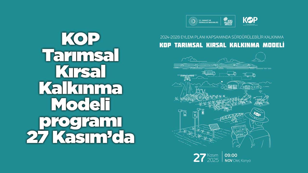 Konya Ovası Projesi (KOP) Bölge Kalkınma İdaresi Başkanlığı, 2024–2028 KOP Eylem Planı kapsamında, bölgenin tarım ve kırsal kalkınma vizyonuna yön verecek kapsamlı bir program düzenliyor. “2024–2028 KOP Eylem Planı Kapsamında Sürdürülebilir Kalkınma - KOP Tarımsal Kırsal Kalkınma Modeli Programı”, 27 Kasım 2025 Perşembe günü saat 09.00’da Konya Novotel’de gerçekleştirilecek.