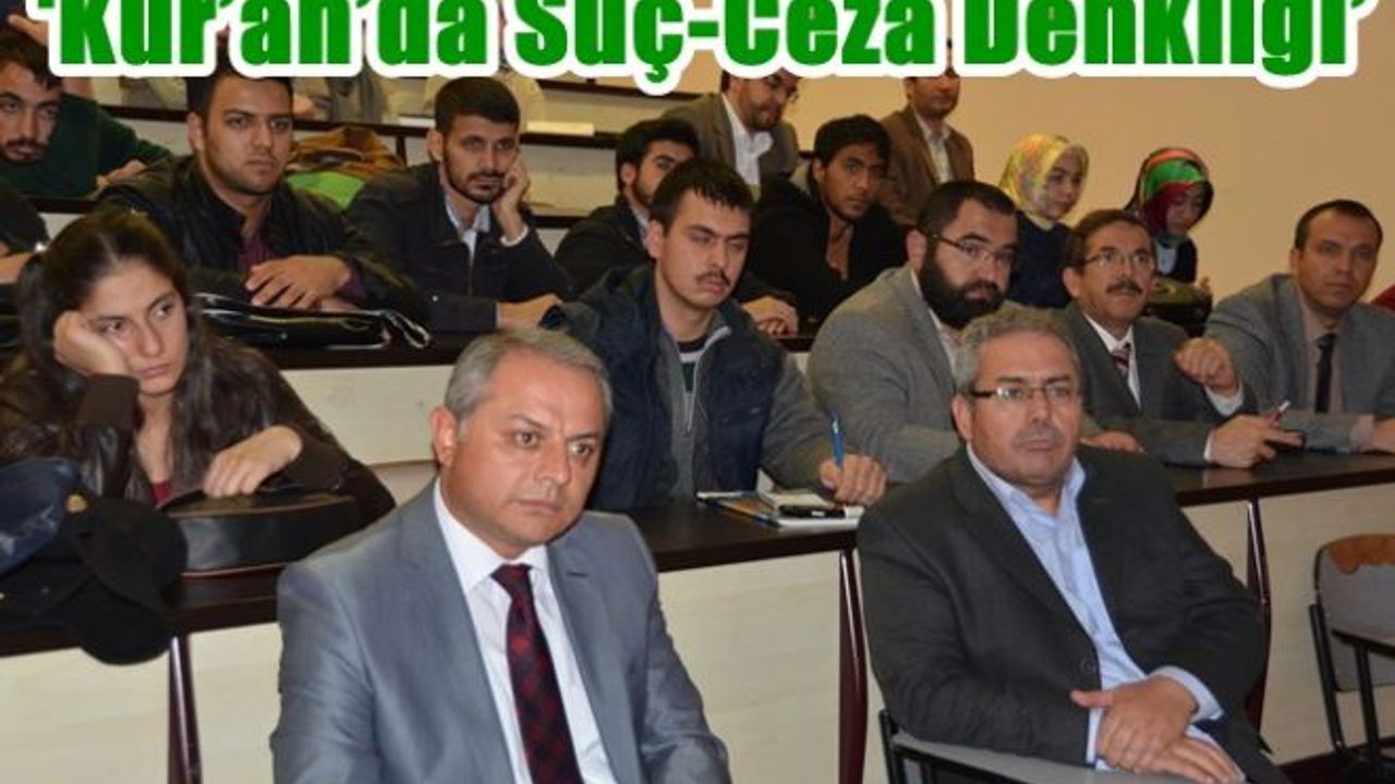 'Kur'an'da Suç-Ceza Denkliği' başlıklı ilk semineri İslami İlimler Fakültesi Fıkıh Anabilim Dalı öğretim üyesi Yrd. Doç. Dr. Adem Yıldırım sundu. Sunumda Yrd. Doç. Dr. Yıldırım, Kur'an'da suç ve ceza arasında birbirleriyle uyumlu, biri diğerini çağrıştıran bir yapının varlığından bahsederek, 'Suç ve ceza birbirinden ayrılmaz iki kavramdır. Bir suça ceza tayin edilirken, cezanın suçtan bağımsız ele alınamayacağı, cezanın ancak suça endeksli olarak tayin edilebileceği, adaleti ve olası mağduriyetleri gidermenin ancak bu ilkenin icrasıyla mümkün olabilir.' dedi.