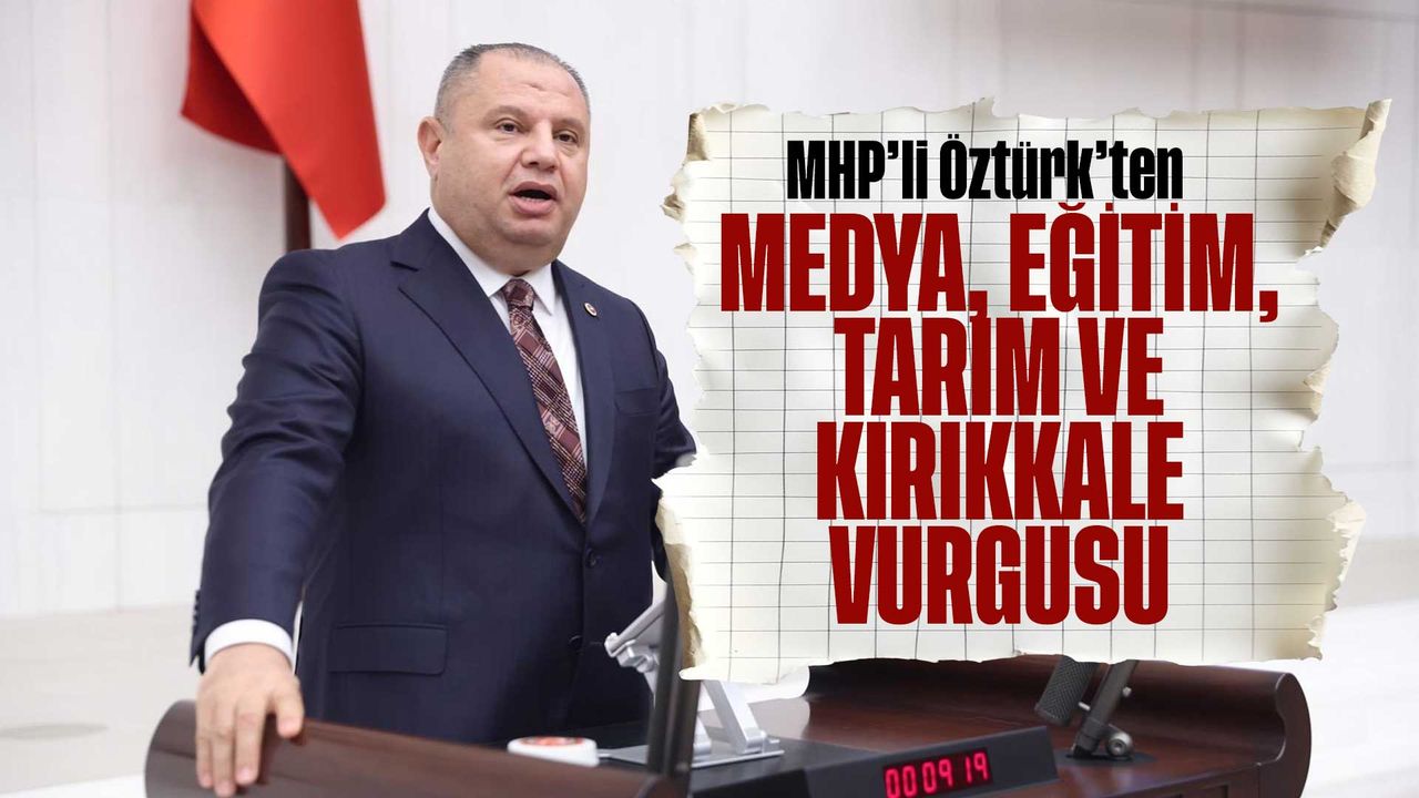 Öztürk, Kırıkkaleli sporseverlerin uzun süredir beklediği MKE Fikret Karabudak Stadyumu’nun 2026 yatırım programına alınarak 12 bin 500 kişilik kapasiteyle yenilenmesi gerektiğini ifade etti. Şehirde spor altyapısının yetersiz olduğunu belirten Öztürk, bu eksiklerin giderilmesinin sporun tabana yayılması açısından önemli olduğunu söyledi. Kırıkkale’de mevcut organize sanayi bölgelerinin dolu olduğunu hatırlatan Öztürk, Roket İhtisas OSB ve Havacılık İhtisas OSB’nin hayata geçirilmesi gerektiğini dile getirdi. Tekstil sektörüne yönelik Tekstil OSB kurulması, Bahşılı ve Balışeyh’te Tekstil Lisesi açılması, Besi OSB ve Gıda OSB projelerinin hayata geçirilmesi çağrısında bulundu.