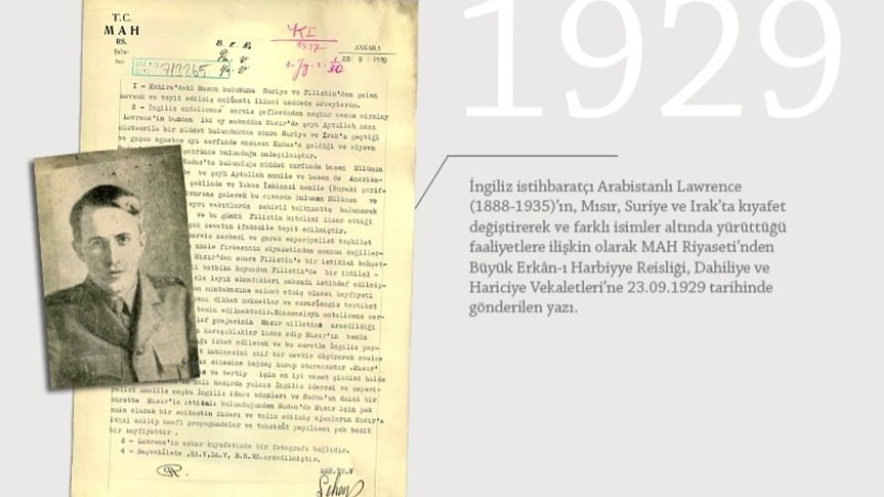 MİT'in resmi internet sitesinde 'Özel Koleksiyon' içinde ziyaretçilerin erişimine açılan belgeler kısmına 87 yıllık bir raporu yayımladı. İngiliz istihbaratçı Arabistanlı Lawrence hakkında, 23 Eylül 1929 tarihinde dönemin istihbarat teşkilatı Milli Emniyet Hizmeti Riyaseti (MAH) tarafından Büyük Erkan-ı Harbiyye Reisliği, Dahiliye ve Hariciye Vekaletleri'ne gönderilmek üzere hazırlanan raporda, Mısır, Suriye ve Irak'ta kıyafet değiştirerek ve farklı isimler ile yürüttüğü faaliyetlere ilişkin bilgiler yer aldı.