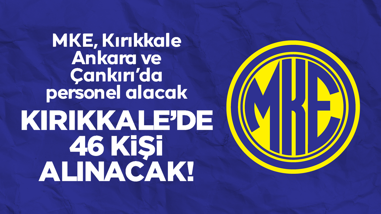 Makine ve Kimya Endüstrisi Anonim Şirketi (MKE), engelli ve TMY (Terörle Mücadelede Malul Sayılmayacak Şekilde Yaralanan) kadroları için alım yapacağını duyurdu. Ankara, Kırıkkale ve Çankırı illerini kapsayan ilanlarda, Kırıkkale için toplam 46 kişilik kontenjan ayrıldı.