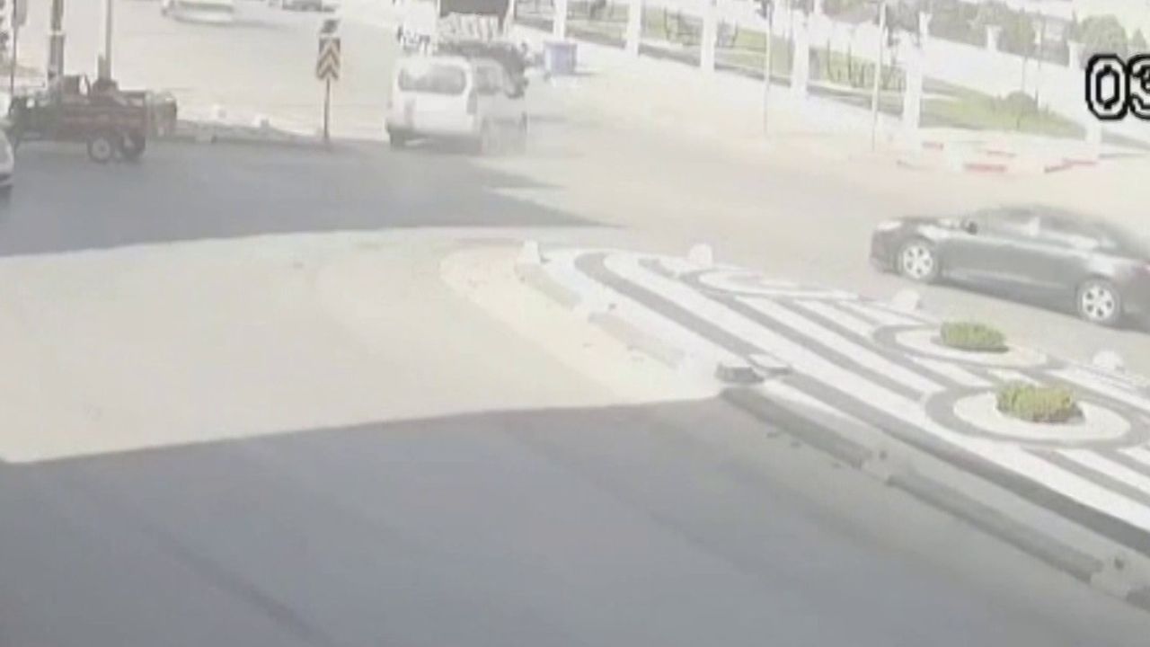 İhbar üzerine olay yerine sağlık ve polis ekipleri sevk edildi. Kazada yaralanan olmazken, araçlarda maddi hasar meydana geldi. Kazaya ilişkin güvenlik kamerası görüntülerinde, hafif ticari araç ile otomobilin çarpışma anı, hafif ticari aracın savrularak kamyonete çarpması ve motosiklet sürücüsünün iki araç arasında kalmaktan son anda kurtulduğu yer alıyor.