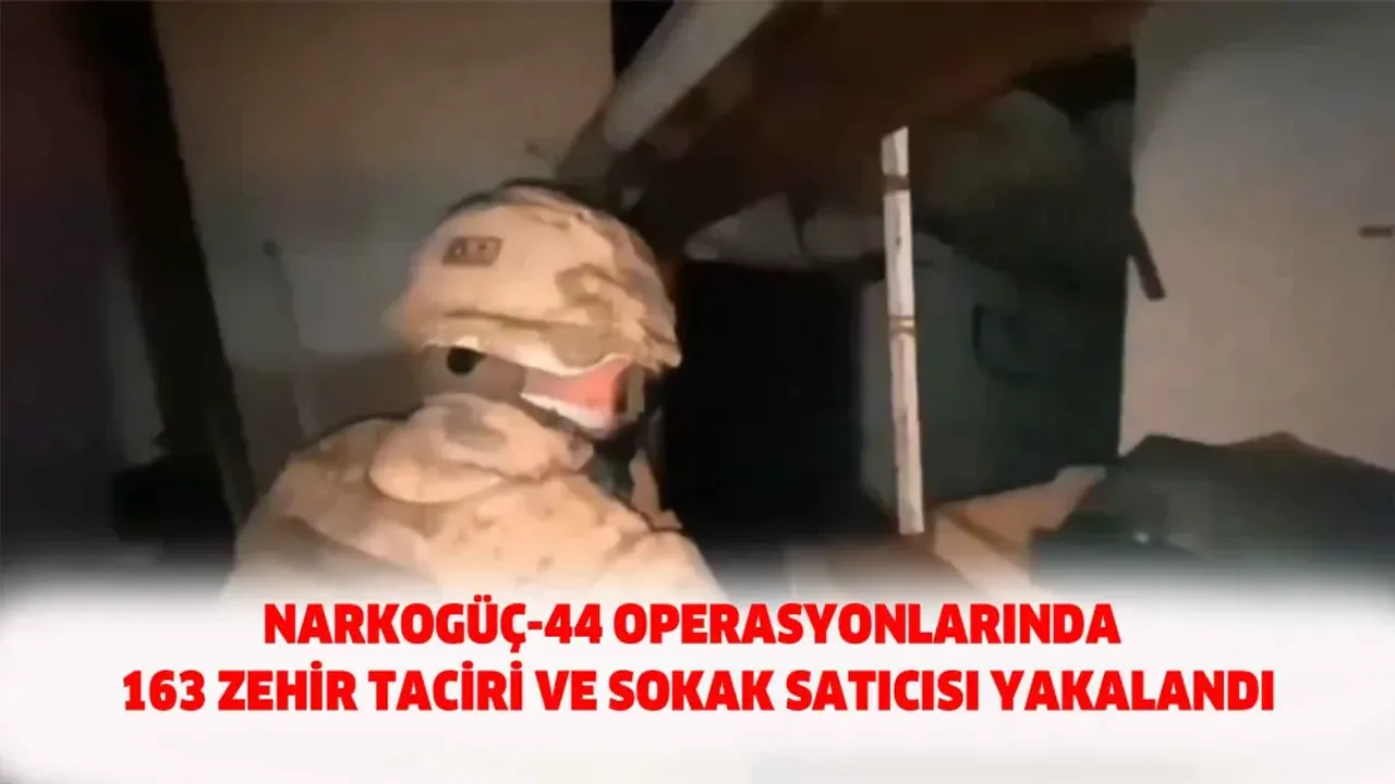 Bakan Yerlikaya, paylaşımında şu ifadelere yer verdi: "Uyuşturucu madde imalatçılarına ve bunların satışını yapanlar ile sokak satıcılarına yönelik 20 ilde düzenlenen Narkogüç-44 operasyonlarında 741 kilogram uyuşturucu madde ele geçirildi, 163 zehir taciri ve sokak satıcısı yakalandı"