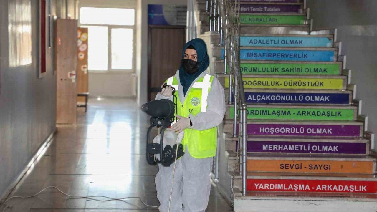 Talas Belediyesi; ara tatilde ilçe genelindeki okullara yönelik detaylı hijyen ve dezenfeksiyon çalışması başlattı.