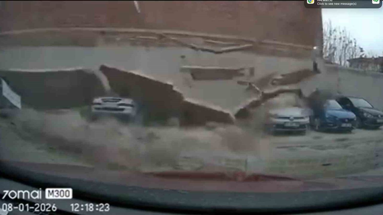 Yenibağlar Mahallesi Hacı Hüsnü Sokak'ta dün saat 12.40 sıralarında meydana gelen olayda, şiddetli rüzgar nedeniyle bir binanın çatı duvarı yandaki otoparkın üzerine çökmüştü. Çevre sakinlerinin gürültü sebebiyle 'patlama' ihbarında bulunduğu ve polis ile itfaiye ekiplerini harekete geçiren olayın ardından bugün yeni bir gelişme yaşandı. 6 aracın zarar gördüğü ve şans eseri yaralananın olmadığı o anlar, otoparkta bulunan bir aracın kamerasına yansıdı. Ortaya çıkan görüntülerde, duvarın devrilme anı ve araçların enkazın altında kaldığı an yer alıyor.