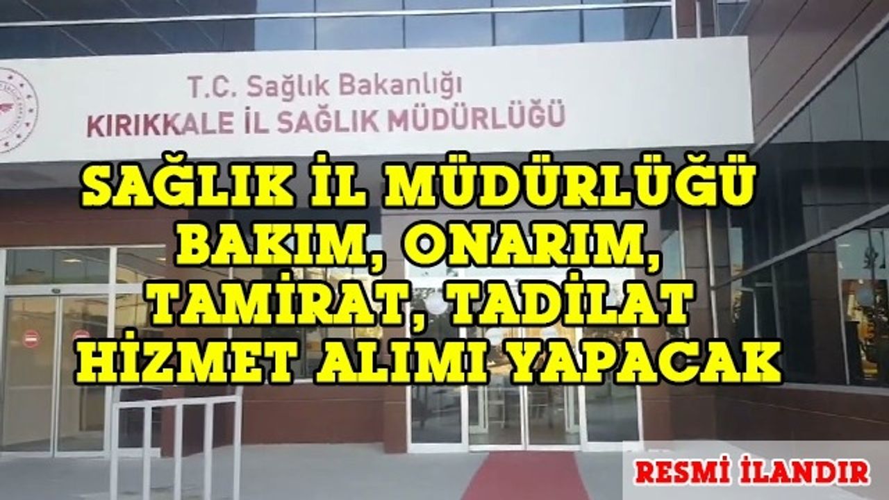 Kırıkkale İl Sağlık Müdürlüğü ve Bağlı Sağlık Tesislerinin 2023-2024 yılları ihtiyacına binaen 47 (Kırk yedi) Kalem periyodik Bakım, Onarım, Tamirat tadilat ,Hizmet Alımları İşi hizmet alımı 4734 sayılı Kamu İhale Kanununun 19 uncu maddesine göre açık ihale usulü ile ihale edilecek olup, teklifler sadece elektronik ortamda EKAP üzerinden alınacaktır. İhaleye ilişkin ayrıntılı bilgiler aşağıda yer almaktadır: