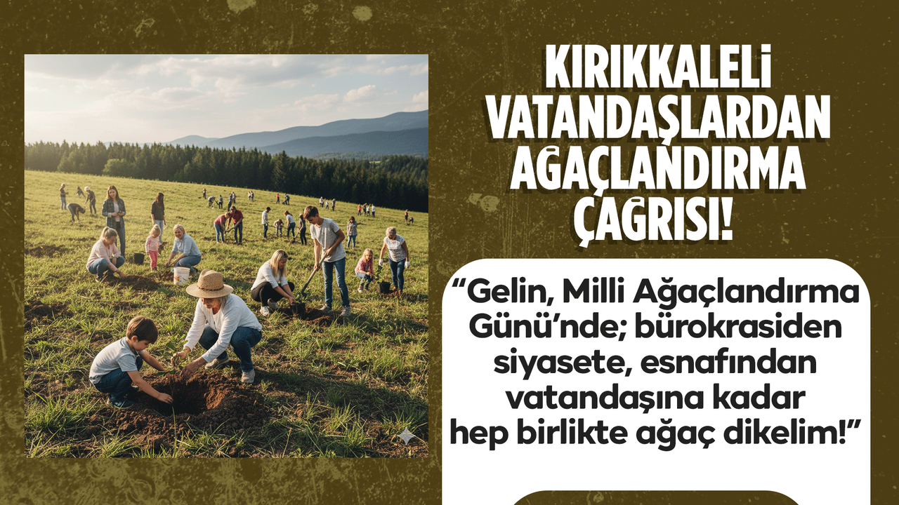 Kırıkkaleli vatandaşlar, kuraklığın her geçen yıl daha fazla hissedildiği Kırıkkale’de, toprakların korunması ve geleceğe nefes olacak yeşil alanların artırılması amacıyla, 11 Kasım Milli Ağaçlandırma Günü’nde Kırıkkaleli tüm vatandaşları ağaç dikmeye davet etti. Yapılan çağrıda, Tarım ve Orman İl Müdürlüğü, Milli Eğitim Müdürlüğü, Gençlik ve Spor İl Müdürlüğü, diğer kamu kurumları, milletvekilleri, il, ilçe ve belde belediye başkanları, il genel meclisi ve belediye meclisi üyeleri, muhtarlar, Kırıkkale Üniversitesi Rektörü, üniversitede bulunan öğrenciler ve öğretim üyeleri, hayırsever iş insanları ve esnaflar ile birlikte tüm Kırıkkaleli vatandaşlar davet edildi. Vatandaşlar ayrıca, bu seferberliğin Kırıkkale Valisi Mehmet Makas ile Kırıkkale Valiliği himayeleri altında gerçekleştirilmesinin uygun olacağını dile getirdi.