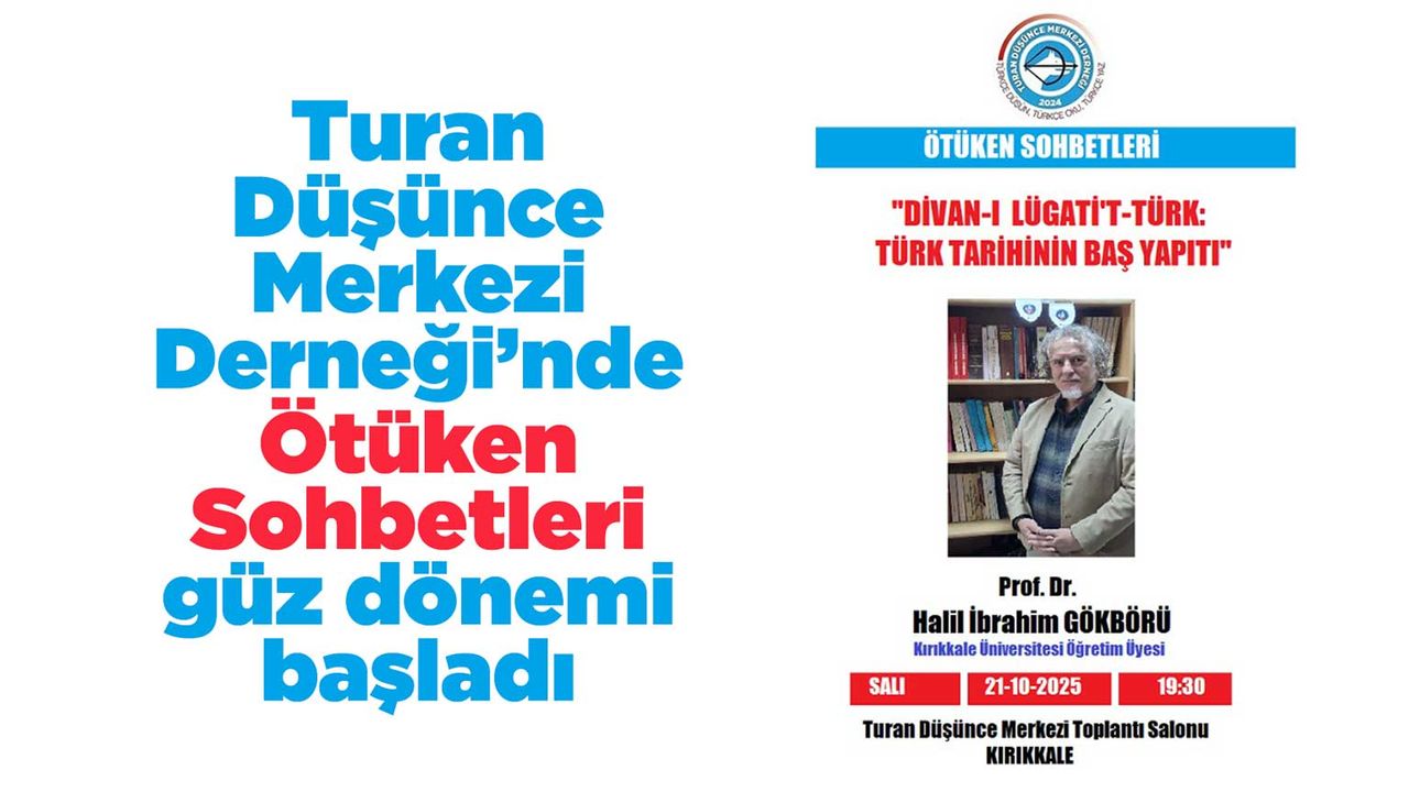 Kırıkkale’nin tek bilim derneği olan Turan Düşünce Merkezi Derneği, şehirde yürüttüğü bilimsel ve kültürel faaliyetlerle dikkat çekmeye devam ediyor. Dernek, gelenek haline getirdiği Ötüken Sohbetleri’nin güz dönemini başlattı.