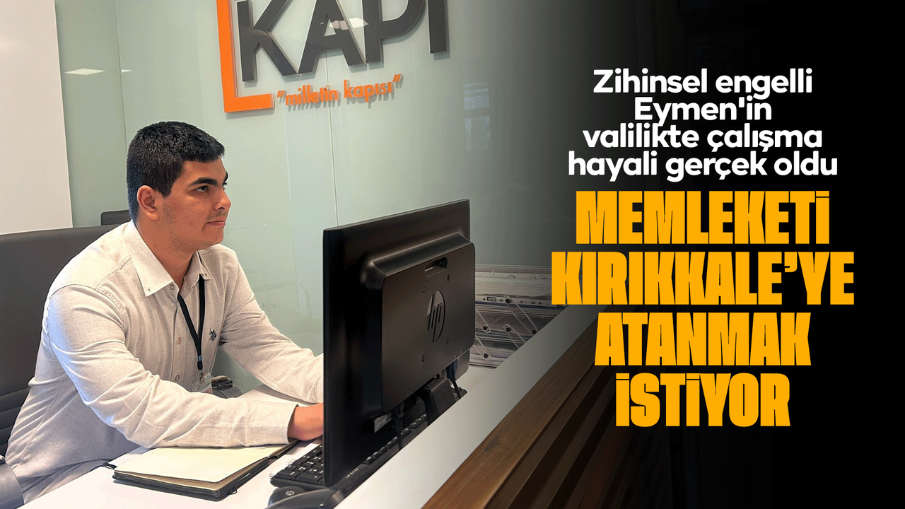 Eskişehir'de valilikte çalışma hayali olan 18 yaşındaki Eymen Çağlar Ertaş, 3 Aralık Dünya Engelliler Günü dolayısıyla bir gün Açık Kapı'da çalıştı. Hayalini gerçekleştiren genç, engelli olmanın çalışmaya engel olmadığını göstererek herkese örnek oldu. Kamu Personel Seçme Sınavı'na (KPSS) hazırlanan Eymen, memleketi olan Kırıkkale'ye atanmak istediğini söyledi. Gün boyu gelen vatandaşlarla ilgilenen ve gerekli birimlere yönlendiren Eymen, çalışmasıyla da takdir topladı.